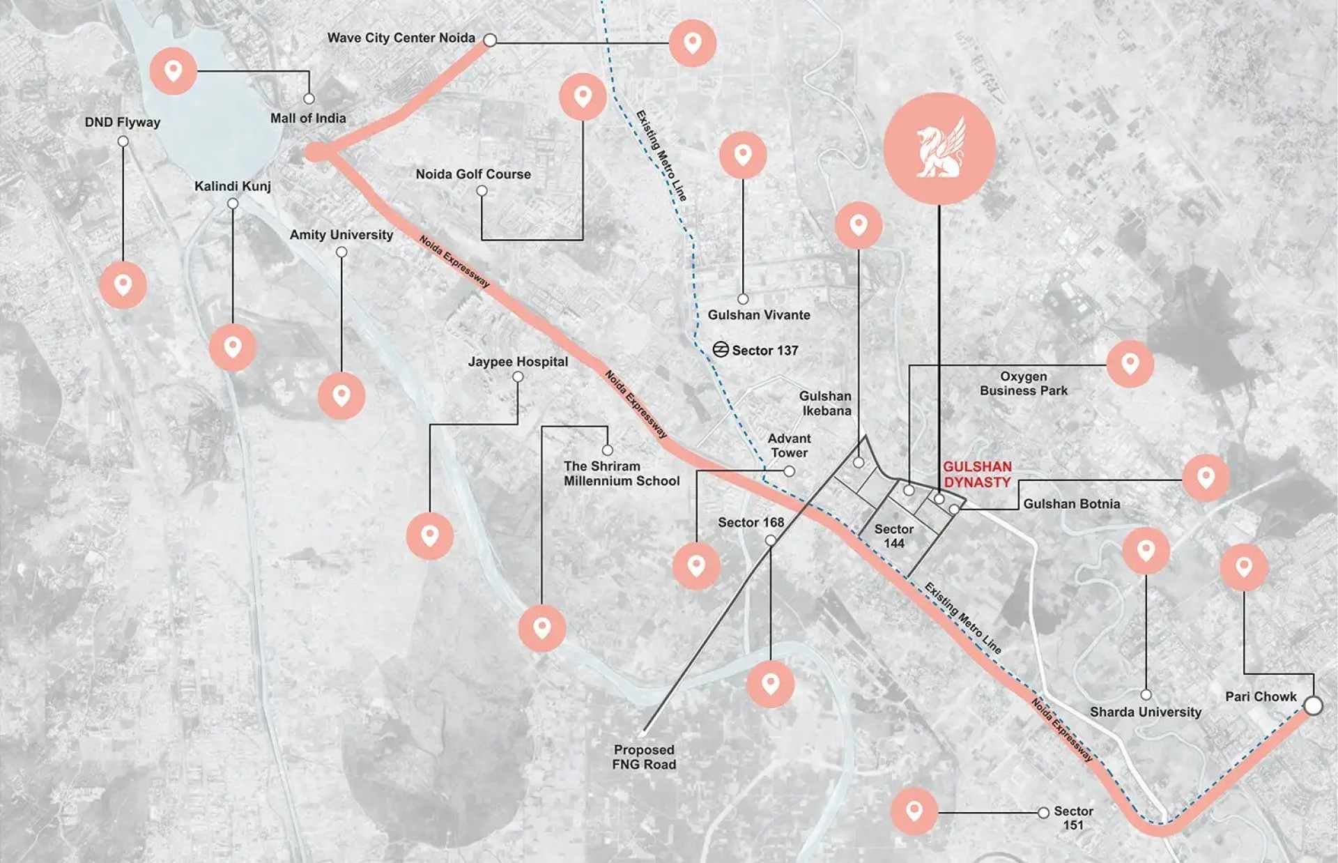Located on the Noida–Greater Noida Expressway and just steps from Sector 144 Metro Station, it ensures seamless connectivity to schools, hospitals, offices, and malls. With possession in 2025, Gulshan Dynasty is one of Noida’s most premium addresses, offering luxury, privacy, and strong value growth.
